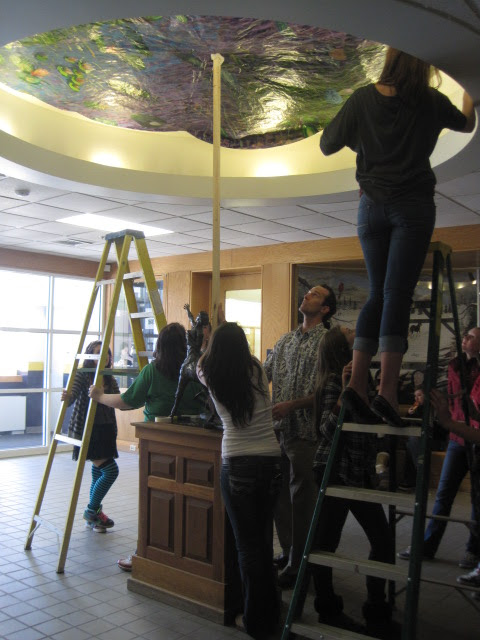 Today we completed the "Monet Effect Operation" and stapled the painting to the ceiling in the Academy Foyer.